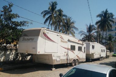 *Restauranteros y hoteleros de la zona centro de Bucerías reportaron a tránsito de Bahía de Banderas, estos tráileres estacionados…