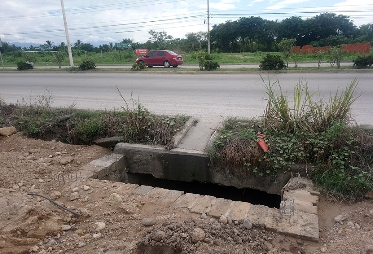 Grupo Álica tapa dren natural que cruza carretera 200 en Tondoroque