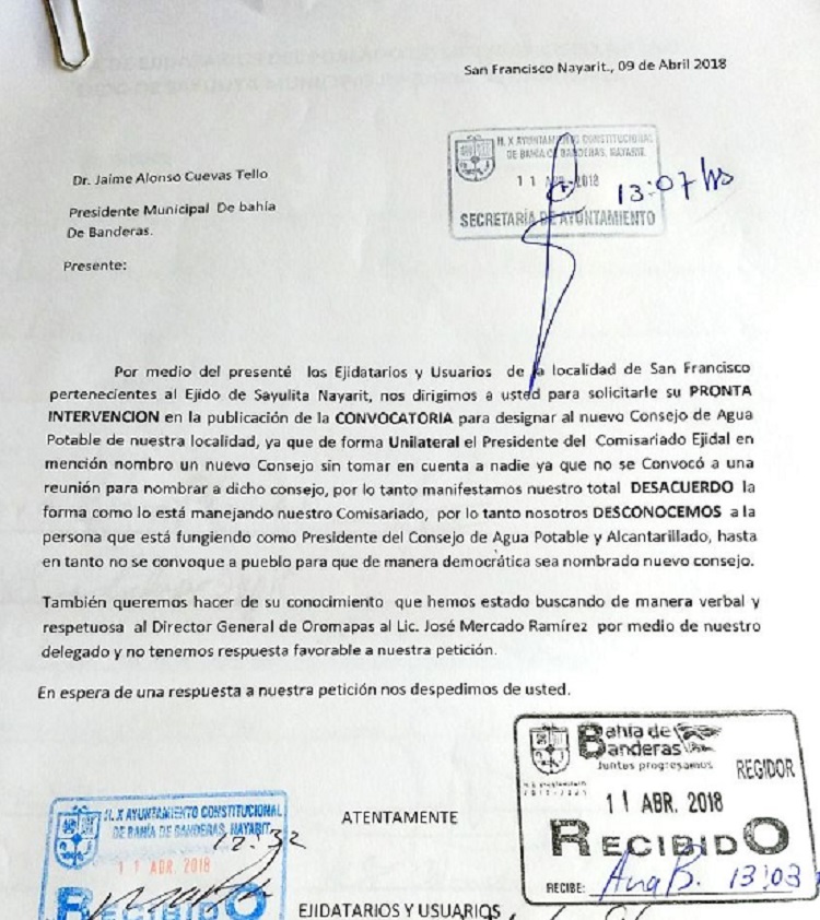 * De 80 ejidatarios de Sayulita y Anexos, 52 firmaron solicitud al alcalde de Bahía de Banderas, Jaime Cuevas…