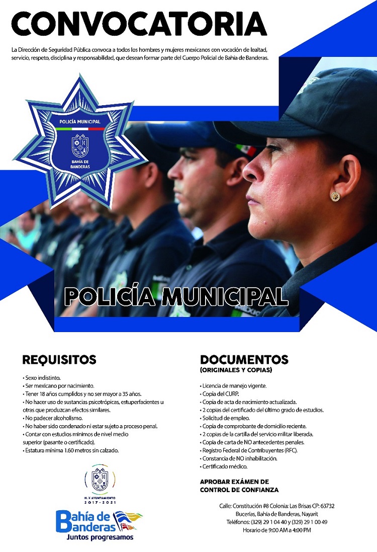 *Aspirantes deberán pasar examen de control de confianza y contar con preparatoria terminada o pasante como mínimo de escolaridad….