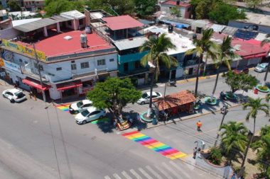 Principales pasos peatonales de Bucerías se pintan de colores con motivo del Pride Day