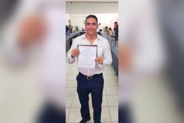 El diputado electo por el distrito 18 de Bahía de Banderas Héctor Santana al recibir su constancia hoy 15…