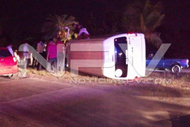 Se registra choque con volcadura de taxi en Mezcales