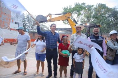 El presidente municipal, Héctor Santana, encabezó el arranque de la obra de construcción de la techumbre en…