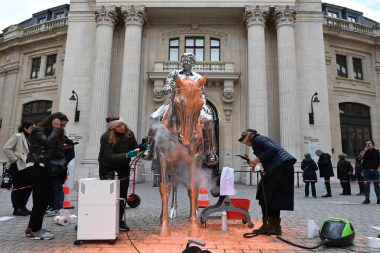 Ambientalistas rocían pintura en escultura de Charles Ray en París