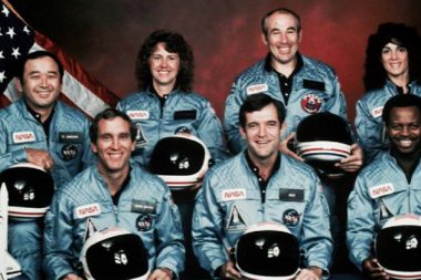 Seis astronautas de la NASA, y Christa McAuliffe –primera maestra en viajar al espacio–…