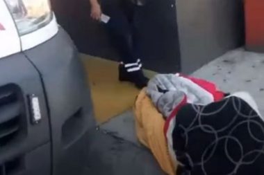 Un enfermo envuelto en cobijas fue tirado afuera de la Cruz Verde Ruiz Sánchez,…