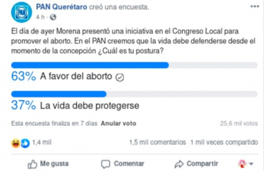 El PAN lanza encuesta sobre aborto en Querétaro; la mayoría vota a favor y borra resultados
