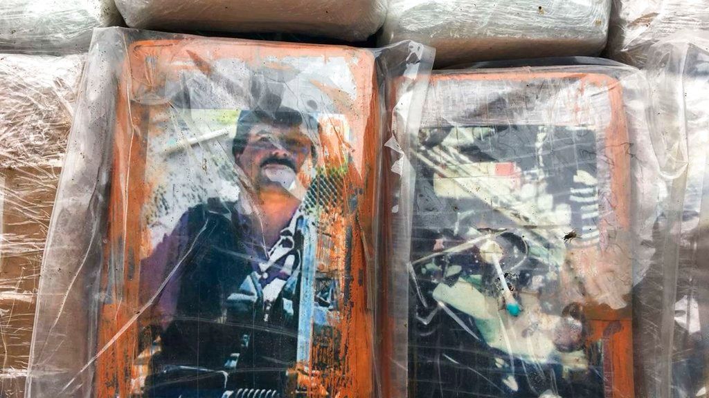 * Los más de mil kilos de cocaína incautados tenían imágenes de Joaquín Guzmán Loera y Pablo Escobar con…