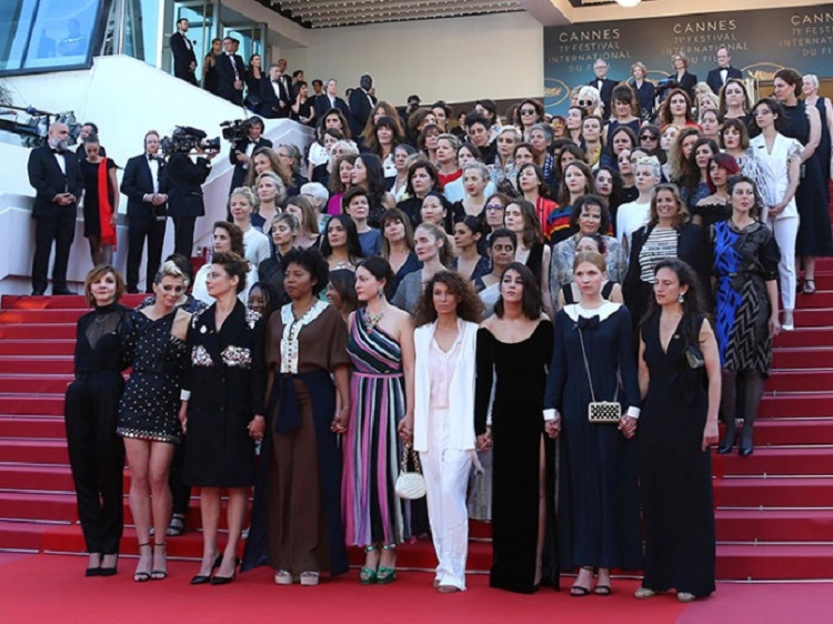 *La protesta reunió a varias profesionales de la industria, como las actrices Salma Salma Hayek y Jane Fonda, la…