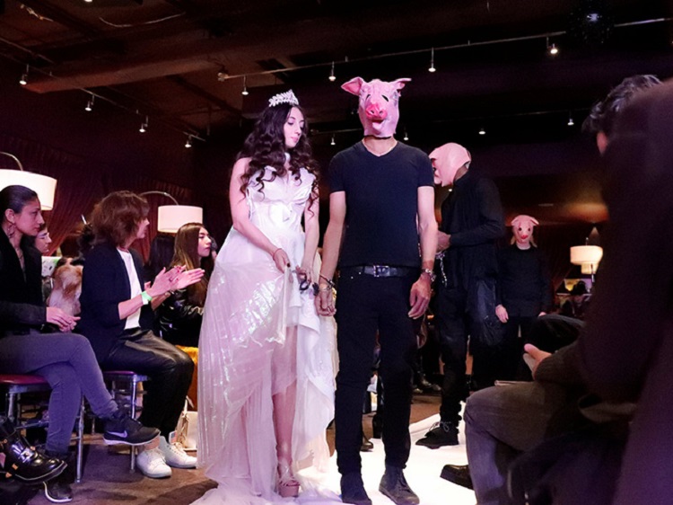 *Con una pasarela por la que desfilaron modelos con alas de ángel esposadas a hombres con máscaras de cerdo,…