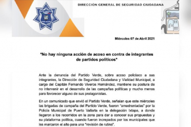 Comunicado Oficial | Ante la denuncia del Partido Verde, sobre acoso policiaco a sus integrantes, la Dirección…