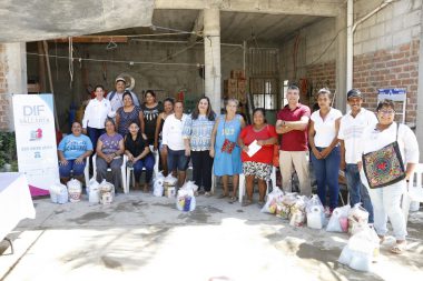 La presidenta del organismo, Candelaria Tovar de Dávalos, entregó alimentos y artículos de limpieza a…