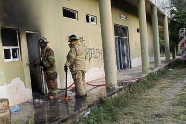 Bomberos de Nayarit sofocaron un incendio en una bodega del estadio de fútbol en Compostela,…