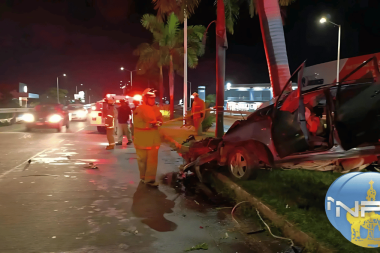 Protección Civil rescató al conductor al quedar atrapado. La camioneta se estrelló contra una palmera…