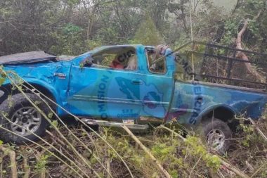 La camioneta se quedó sin control y terminó el fondo de un barranco atorada entre…