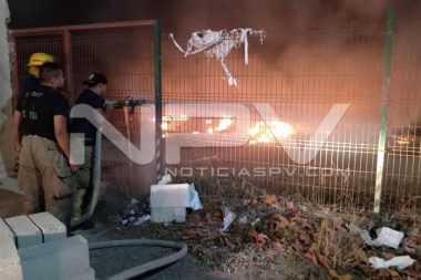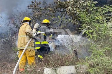 Un poste de madera y neumáticos estaban envueltos en llamas. Utilizando una motobomba, lograron extinguir…