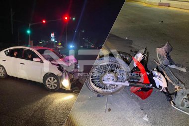Moto se estrelló contra un auto en los semáforos de Tondoroque