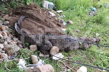 Bomberos de Nayarit reubican a un cocodrilo en Compostela