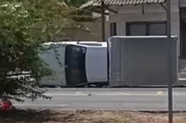 Un auto y una camioneta chocaron, dejando sólo cuantiosos daños materiales. La camioneta quedó volcada