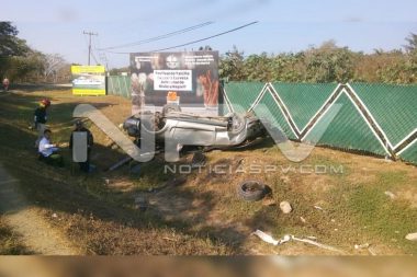 Quedó con las cuatro llantas hacia arriba y todo indica que el a causa del…