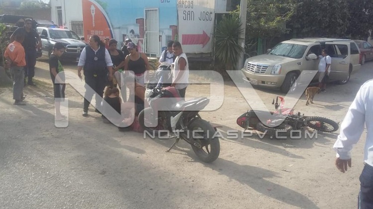 *Dos personas resultaron lesionadas tras impactarse contra un vehículo Jetta en la motocicleta que tripulaban por la carretera a…