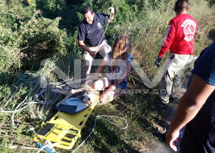 *Elementos de Protección Civil del Estado arribaron al lugar rescatando a la mujer y a dos perros de un…