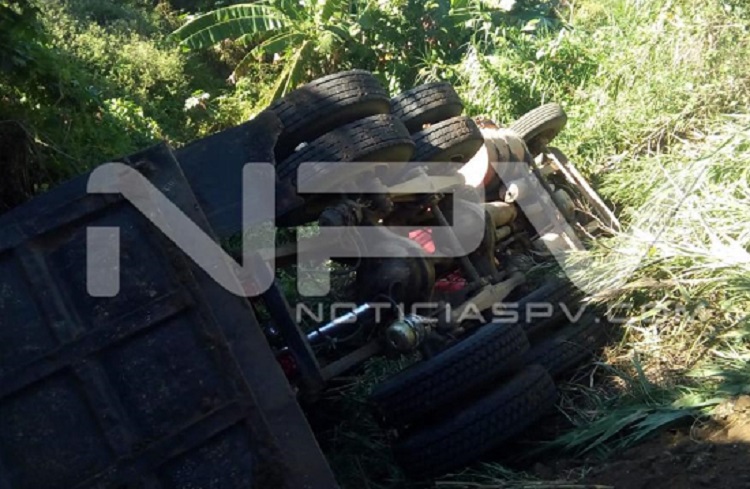 * El pesado vehículo cayó a un barranco luego de que el conductor perdió el control quien fue rescatado…