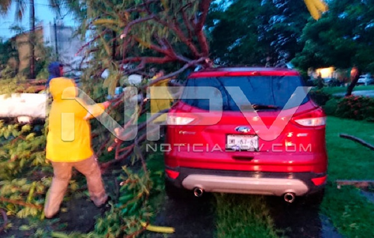 *Frente al parque del fraccionamiento, el viento tumbó un enorme árbol que daño vehículos que estaban estacionados en la…