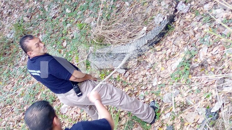 *Unas personas lo reportaron a las autoridades cuando el reptil andaba caminando cerca de la gente en la carretera Por…