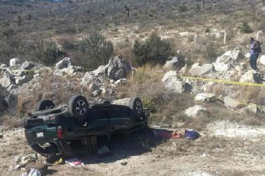 Una camioneta con placas del estado de Nuevo León se volcó en la carretera…