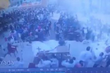 Se registró un fuerte viento en el momento en que el sacerdote iniciaba la…