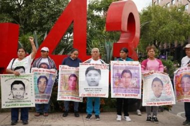 Una comisión de madres y padres de los 43 normalistas de Ayotzinapa desaparecidos en…