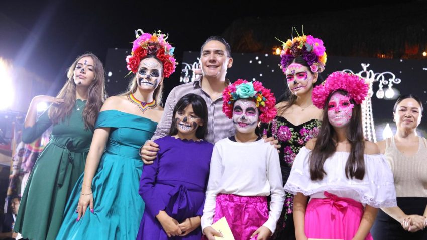 El presidente municipal, Héctor Javier Santana García, acompañado de su esposa Margui Zúñiga y sus tres hijas, todas caracterizadas de bellas catrinas, compartió su entusiasmo y orgullo por este evento. “Esto es nuestra cultura, estas son nuestras tradiciones, esta es nuestra riqueza, esto es nuestro México que queremos compartir con el mundo entero. ¡Felicidades a las tres, están hermosas, y que gane la mejor!”, expresó.
