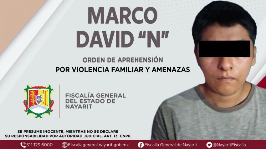 Por su parte la Fiscalía del Estado de Nayarit dio a conocer, que en el municipio de Bahía de Banderas, la Fiscalía General de Nayarit a través de la Agencia de Investigación Criminal dio cumplimiento a una orden de aprehensión contra Marco David “N”, por su presunta participación en hechos que según apreciación de la ley encuadran los delitos de violencia familiar y amenazas, cometidos en perjuicio de una mujer de identidad reservada.