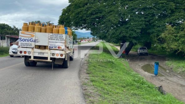 Los hechos ocurrieron esta tarde de lunes por la carretera que conduce a Valle de Banderas, a apenas unos metros de la Glorieta de Los Indios, donde reportaron que de una camioneta Pick Up, se había caído un cilindro de gas Lp de 30 kilos y que estaba fugandose el combustible que traía, por lo que solicitaron la presencia de los elementos de los servicios de emergencias en el lugar.