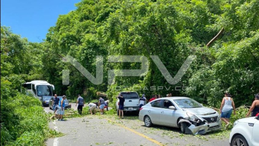 La Secretaría de Seguridad y Protección Ciudadana del estado de Nayarit recibió la alerta acerca de un árbol que se desplomó sobre un vehículo en la carretera Federal 200, específicamente en el kilómetro 109.