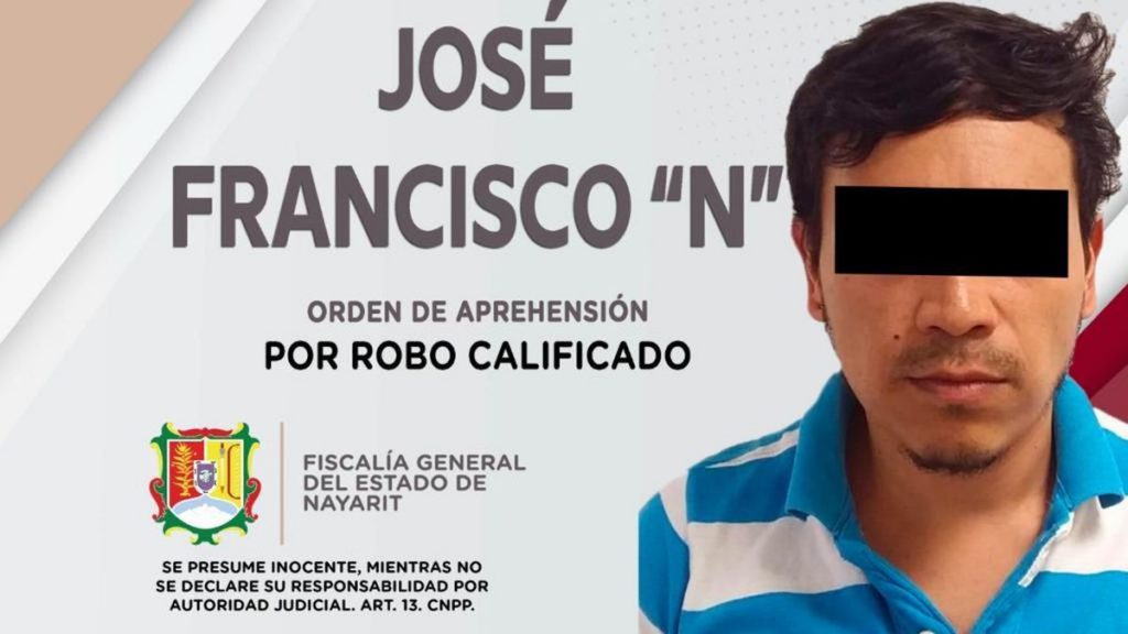 Comunicado.- En la ciudad de Tepic, Fiscalía General de Nayarit a través de la Agencia de Investigación Criminal, dio cumplimiento a una orden de aprehensión contra José Francisco “N”, por su probable responsabilidad penal en hechos que la ley señala como delito de robo calificado, el cual fue cometido en agravio del patrimonio de la empresa Farmacia Guadalajara, S. A. de C. V.