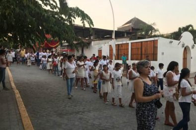 Este jueves 20 de junio 2019, feligreses de la iglesia de la Santa Cruz de la comunidad de La Cruz de Huanacaxtle, Bahía de Banderas, Nayarit, estuvieron de fiesta, celebraron la presencia de Cristo en la Eucaristía lo que se conoce como Corpus Christi. Luego de la Eucaristía de las 7 de la noche, el sacerdote portó en sus manos el Santísimo y en procesión, acompañado por los feligreses recorrieron las calles principales de esta comunidad.