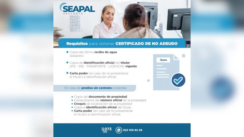 Uno de los trámites catastrales disponibles en SEAPAL Vallarta, es el Certificado de no adeudo, en el cual el organismo expide un documento oficial que valida que el usuario se encuentra al corriente en el pago de sus servicios.