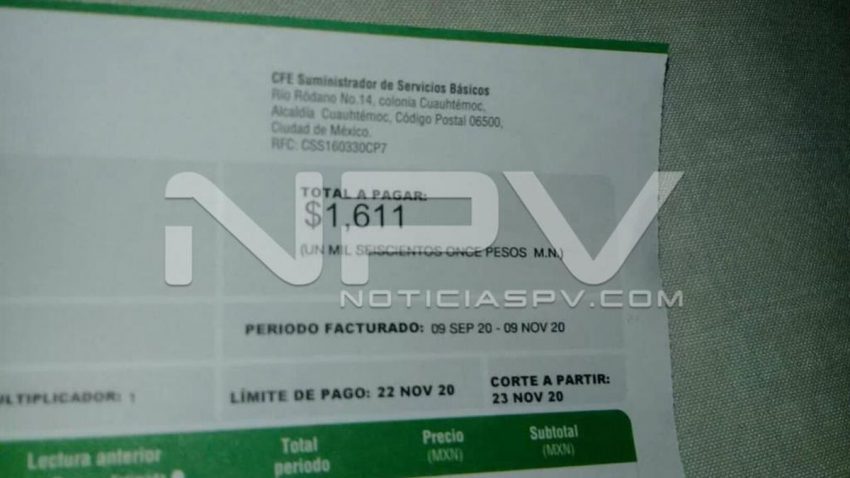 “Como ya sabemos la contingencia afectó a muchas familias por lo cual varias de ellas están atrasadas en los pagos, mismo que no le da derecho a la CFE a no respetar la fecha de corte marcada con la siguiente que es 23 de noviembre del 2020”.