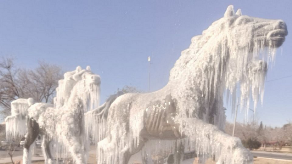 A través de redes sociales, internautas reportaron que tras las bajas temperaturas algunas calles, casas y monumentos habían quedado congelados. Una de las esculturas que amaneció cubierta por el hielo es la llamada «Los indomables», una obra que se ubica en el Parque El Chamizal, cerca del Puente Internacional Córdova-De las Américas. Los usuarios de Twitter compartieron las imágenes donde se observa cómo el frío formo una masa de hielo alrededor de la estructura de caballos.