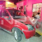 Informan también que al interior de la vivienda se encuentran dos personas, un hombre y una mujer que por poco y mueren aplastados al momento que el vehículo de la marca Ford, tipo Ecosport, de color rojo, con placas RGL-52-27 del Estado de Nayarit, derribó la barda y daño una ventana, quebrando los vidrios de la misma que a punto estuvieron de caerle encima a los inquilinos.