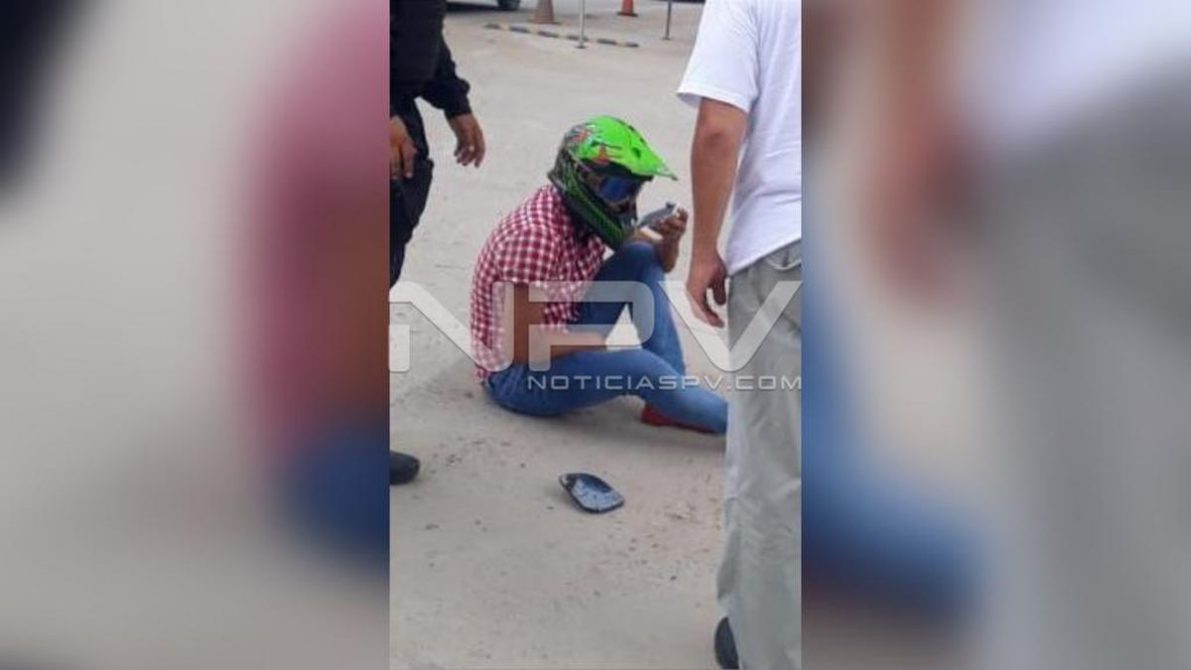 Oficiales de vialidad municipal de Bahía de Banderas y paramédicos del cuerpo de Bomberos y Protección Civil, tomaron conocimiento cerca de un accidente vial registrado frente al Macro Módulo de Jarretaderas.