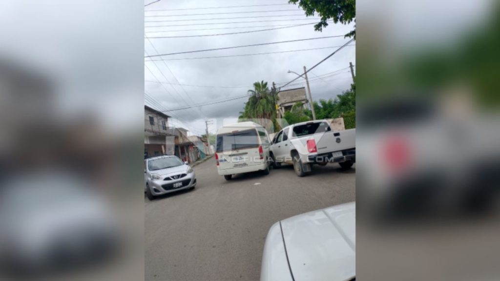 Reportaron al módulo de emergencias que un taxi colectivo tipo Urvan, de la ruta de El Porvenir había chocado contra una camioneta Pick Up, que estaba estacionada donde resultó una pasajera lesionada al caer de su propia altura al resbalar cuanto intentó bajarse de la unidad del transporte público.