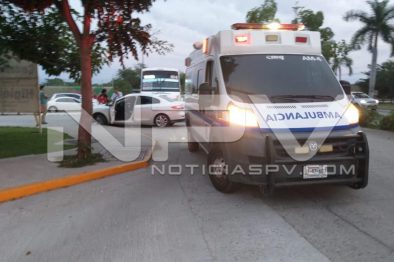 Elementos de los servicios de emergencias y los agentes viales acudieron a tomar nota de un accidente ocurrido cerca del puente peatonal de Flamingos en Bucerías, donde resultaron cuantiosos daños materiales y una mujer lesionada que fue atendida por paramédicos de un hospital particular.