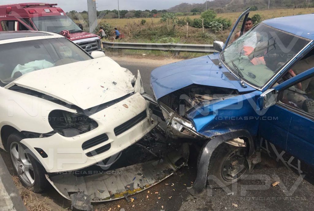 Aquí hay un ejemplo cuando se conduce a exceso de velocidad. Dos vehículos particulares chocan de frente; se trata de un auto compacto y una camioneta. Los hechos se registraron por el camino viejo Valle-Bucerías.