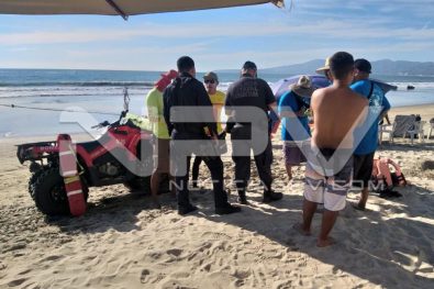 Turista resultó lesionado luego de registrarse un accidente entre dos motos acuáticas en la playa de Nuevo Vallarta, quien fue auxiliado por Guardavidas de Protección Civil del Estado, siendo llevado en una ambulancia privada a recibir atención médica a un hospital particular donde fue atendido en la sala de urgencias.