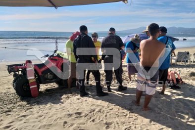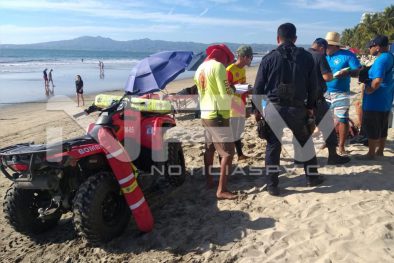 Turista resultó lesionado luego de registrarse un accidente entre dos motos acuáticas en la playa de Nuevo Vallarta, quien fue auxiliado por Guardavidas de Protección Civil del Estado, siendo llevado en una ambulancia privada a recibir atención médica a un hospital particular donde fue atendido en la sala de urgencias.