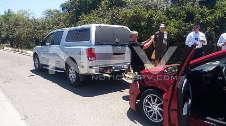 Los agentes viales inmediatamente se dirigieron al sitio indicado en dónde al arribar a bordo de una unidad radio patrulla, esto1s se percatan del accidente informando a su base operativa que se trata de un choque por alcance entre dos vehículos, siendo una camioneta de la marca Nissan, tipo Pick Up, Titán, con las placas de circulación 7Y83244 de California, que conducía una persona del sexo masculino de origen extranjero, de quién se dijo que al ir circulando por el carril de norte a sur, al llegar a la altura del semáforo de la mega le corta la circulación a un vehículo Corolla de color rojo, con las metálicas GPG-575-A, al que se le impacta sobre su costado izquierdo causándole daños materiales.